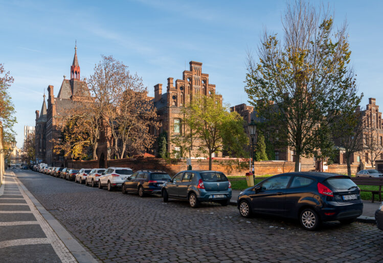 Stavba je postavena v severoněmeckém novogotickém slohu z červených cihel a je tvořena šesti pavilony s jedenácti trakty a vnitřním atriem.