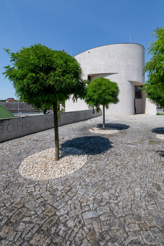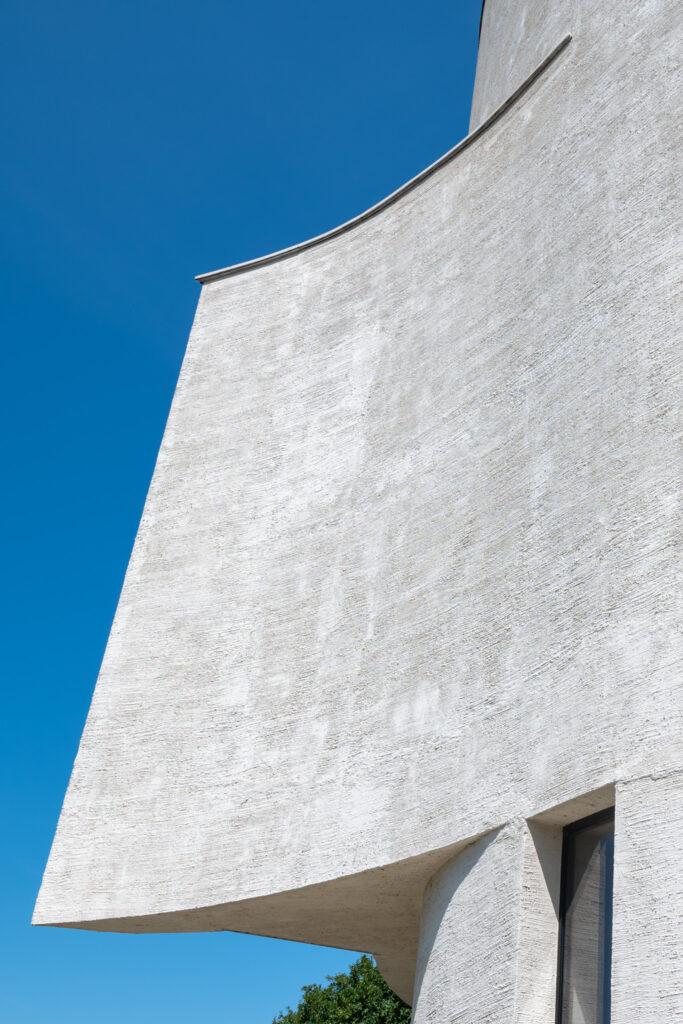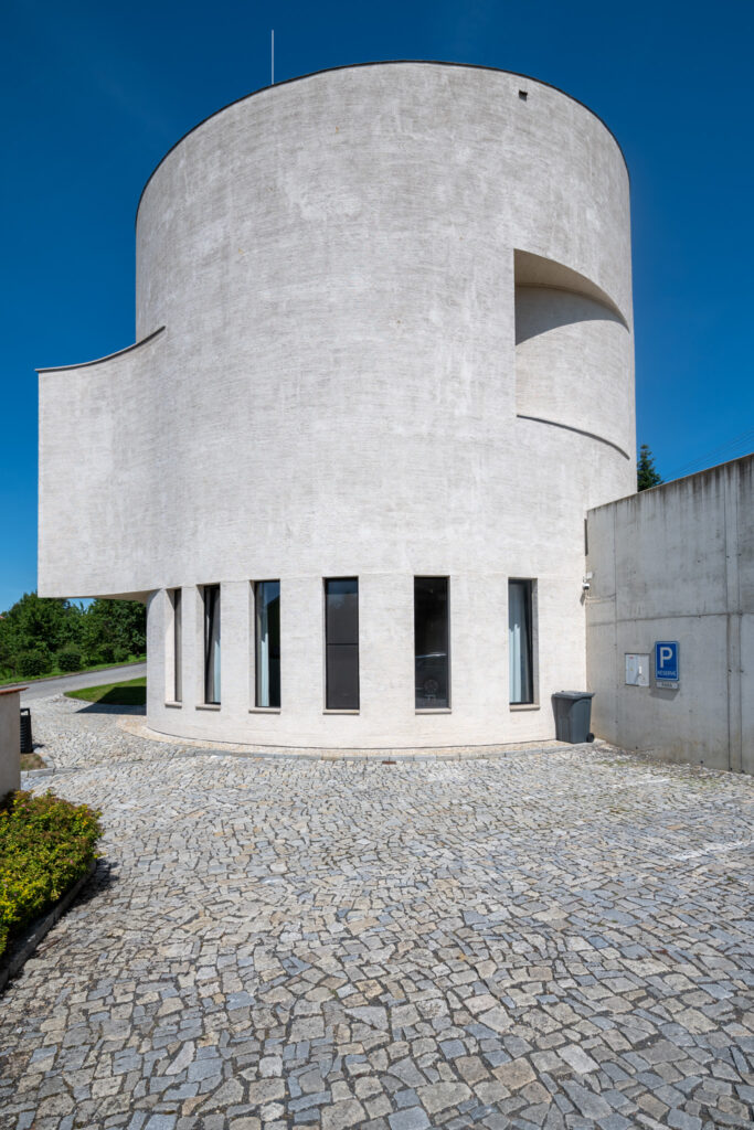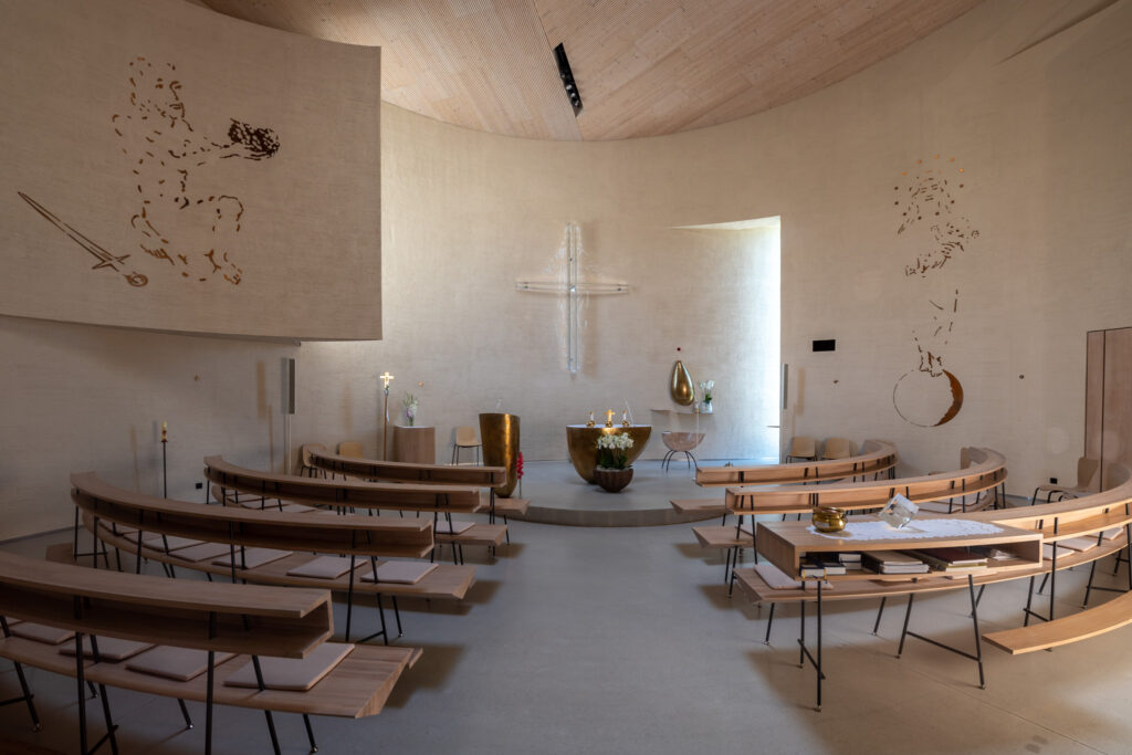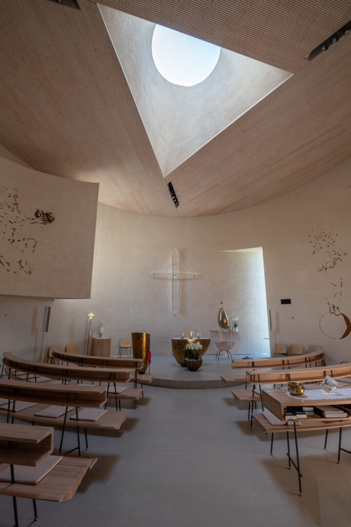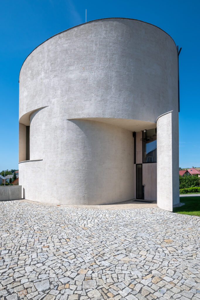 Základním principem je kruh – jednoduchý válcový objem bez ornamentu, který odkazuje na historické sakrální stavby, ale interpretuje je současným jazykem. Tvar však není striktně uzavřený: stěny jsou jemně narušené a otevřené, což umožňuje kontrolovaný vstup světla a narušuje statičnost formy.